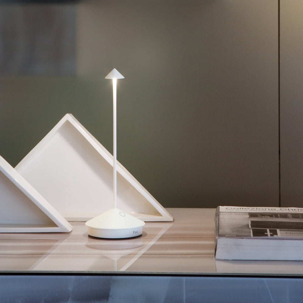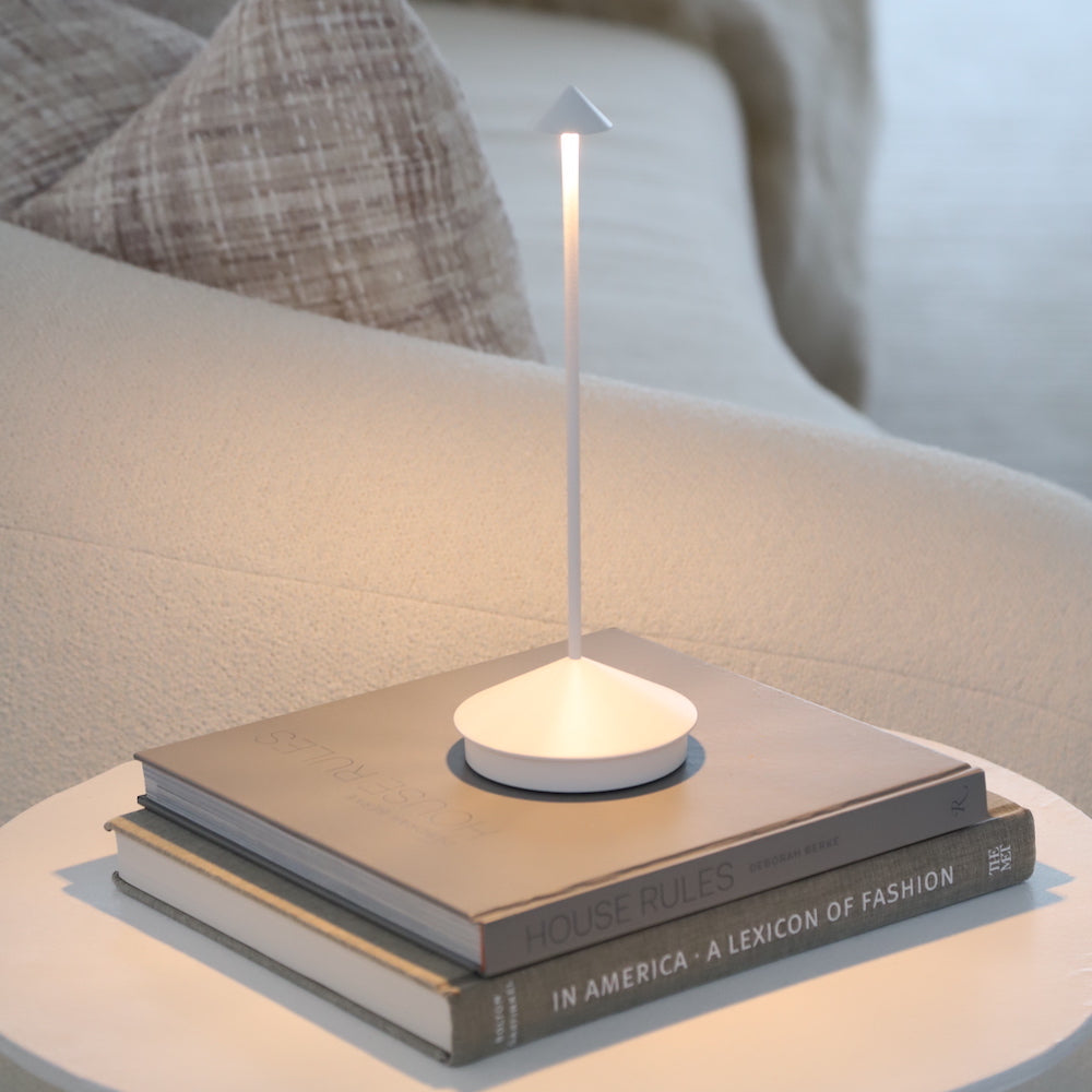 Recognizable from its presence in restaurants across the country, Pina is one of Zafferano’s signature cordless lamps. It is an eternally trendy solution for lighting up your dining room table, patio, living room, and more. Its thin body won’t obstruct your views, but don’t be fooled: Pina casts three feet of illumination, packing a powerful punch.