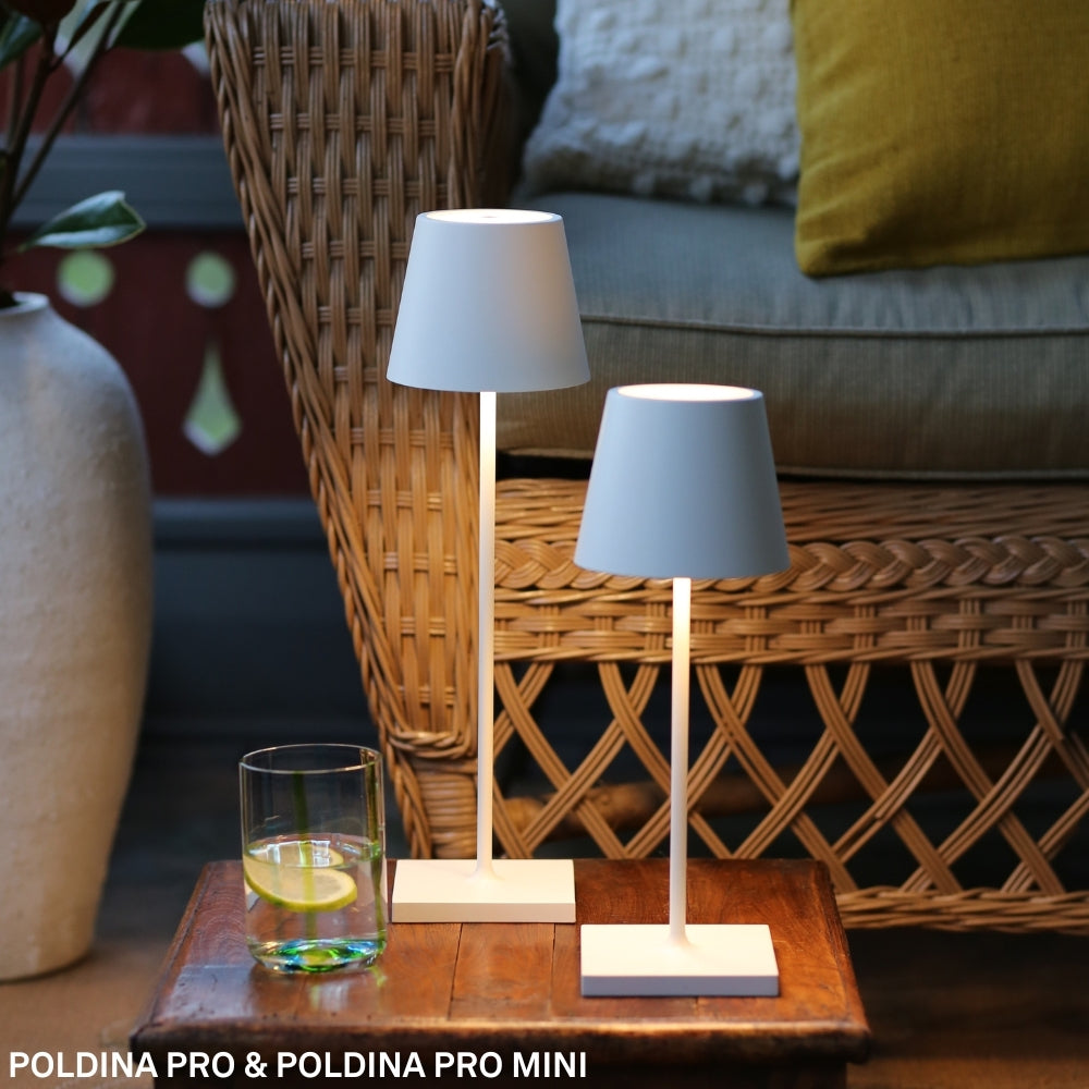 The award-winning Poldina Pro cordless lamp has often been imitated but never equaled. Poldina has redefined the cordless lamp since its introduction in 2018, elevating indoor and outdoor spaces with style and light. Cordless lighting frees you from the constraints of electric wiring, bringing light wherever you need it: a restaurant table, reading under the stars, or that pesky corner that light never seems to reach.